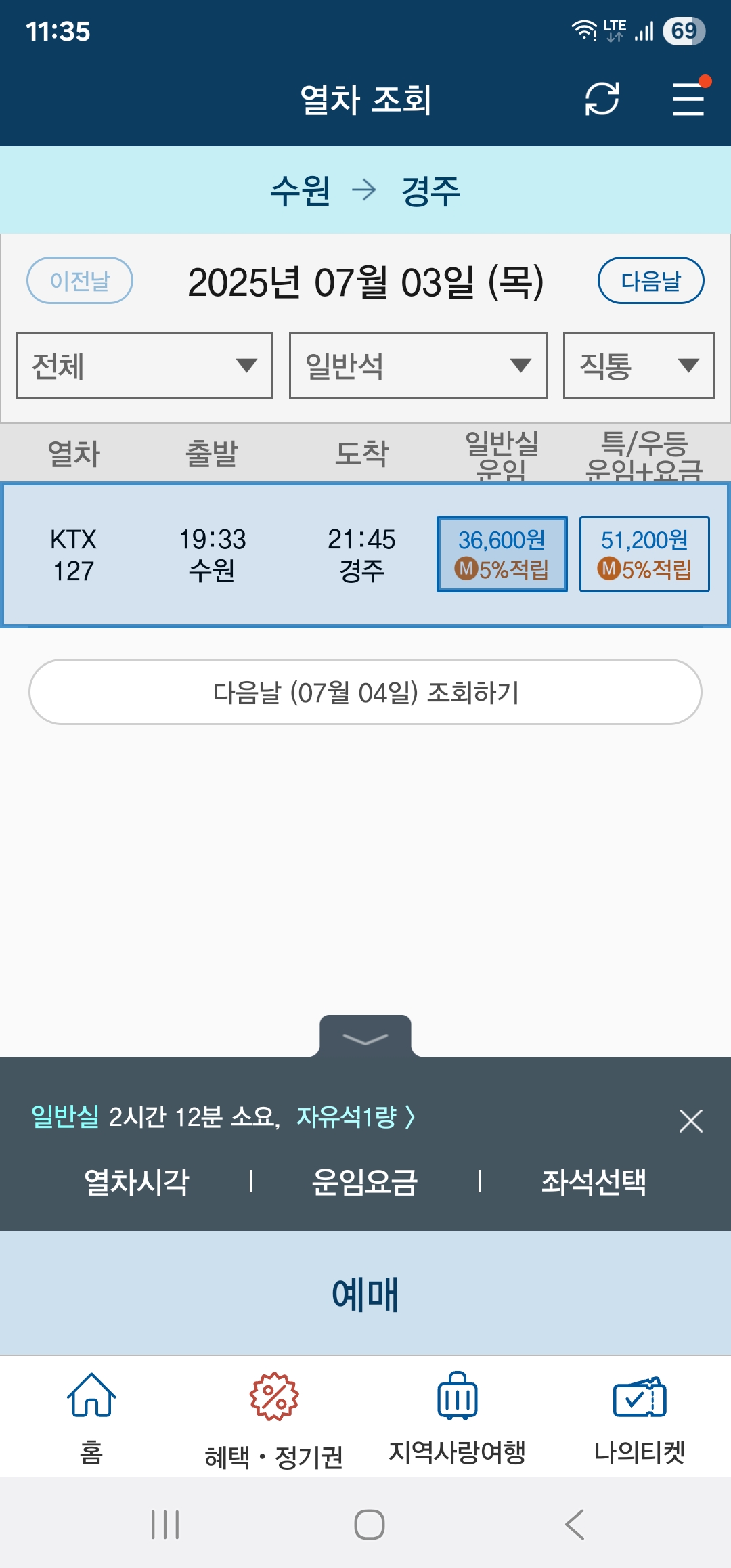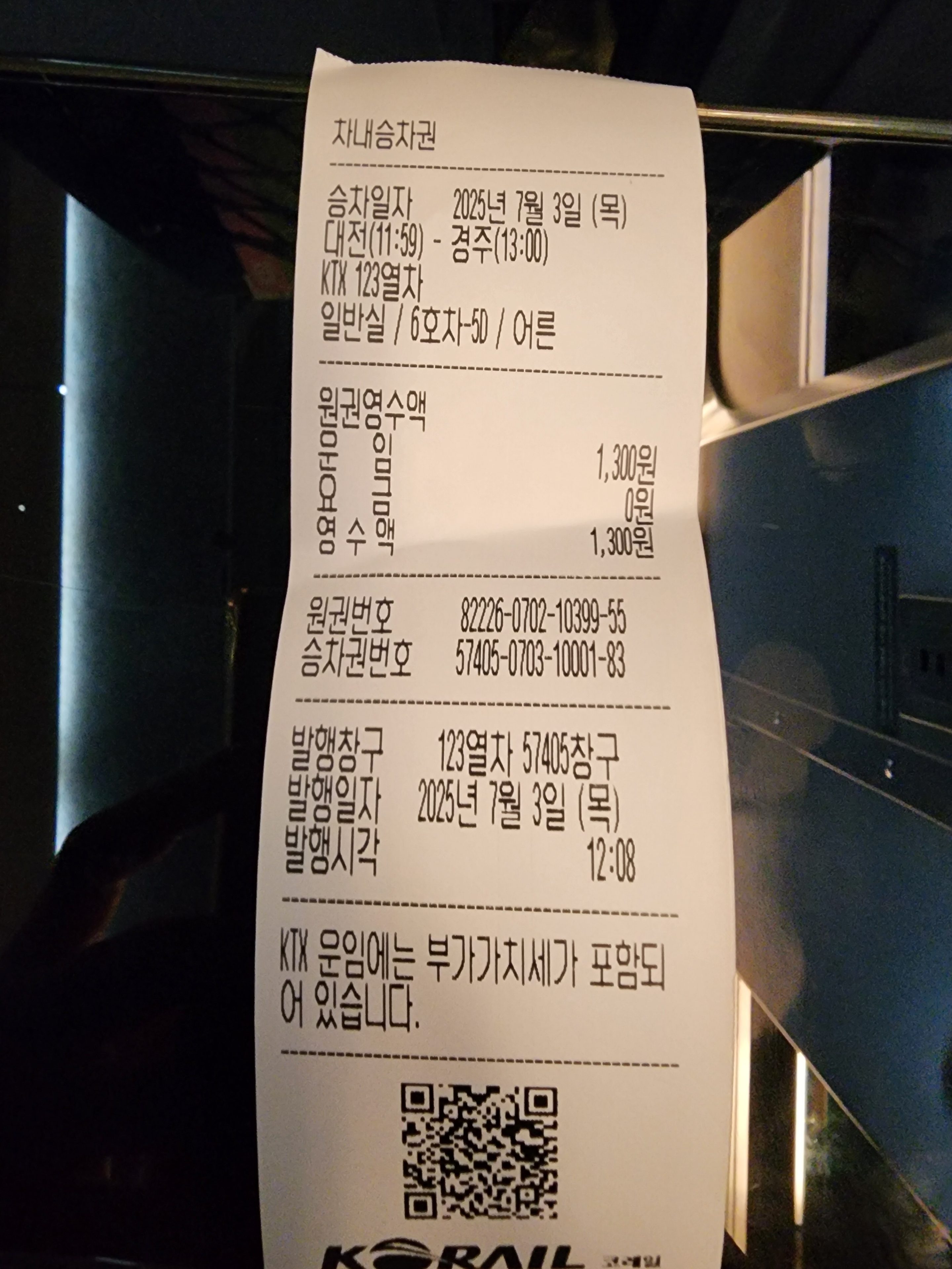 직원 “그럼 다른자리로 옮길 수 있습니다. 추가요금 1300원. 대전부터 경주까지만 추가요금 발생”