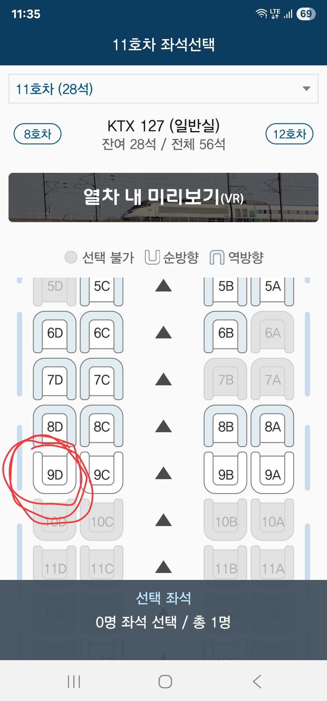 기억하자! KTX 8, 9번 좌석. 절대 금지!